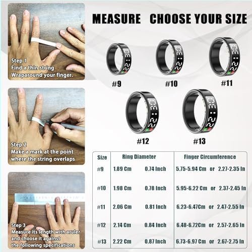 【Size Before You Buy】Smart rings come in standard sizes.Before purchasing the Hivisual smart ring, you can measure your finger size. And Hivisuals smart ring is designed according to the US ring standard, if you know your US ring size, then you can also buy the smart ring with the same US size