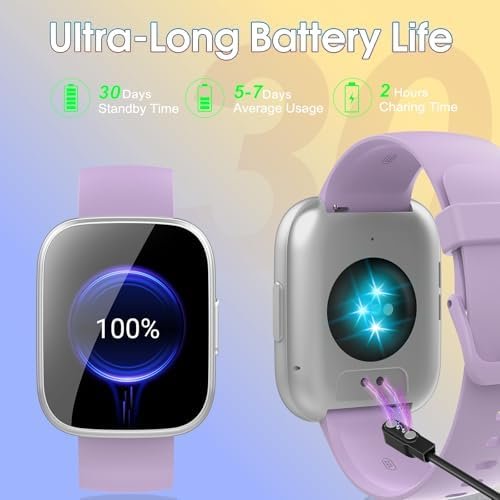 Long Battery Life and Versatile Assistant: Equipped with a large capacity battery, this activity trackers can last up to 5-7 days on a single charge, has a standby time of up to 30 days, and can be fully charged in just 2 hours. This smart watch includes more practical functions, such as sleep monitor, call notifications, SMS and app messages, music and camera control, brightness adjustment, weather display, sedentary remind.