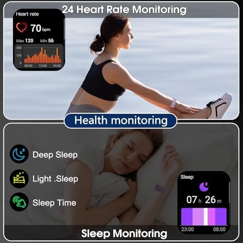 Monitor Your Health 24/7: T80 mens womens watch uses advanced sensing chips and photoelectric sensors for precise monitoring. The smart watch can monitor heart rate in real time 24 hours a day. Always pay attention to your physical health. The men’s smart watch automatically monitors your sleep status (deep sleep, light sleep, awakening) and provides comprehensive sleep quality analysis to help you better understand sleep changes.