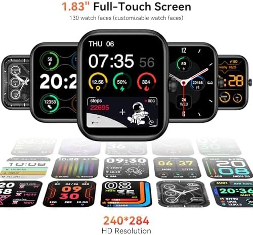 1.83 HD Screen: Fitness tracking watch with HD screen, enjoy vivid colors and sharp details on the ultra-large touchscreen, even under sunlight, with customizable watch faces