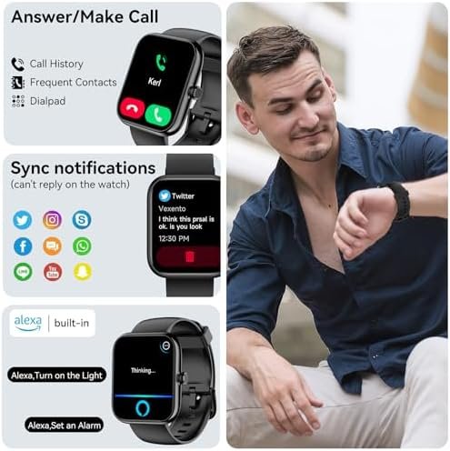 Bluetooth Calls: Smart watch for men women is powered by Bluetooth 5.3 chip Provides you with a stable connection, make or answer calls directly through the watch’s, ideal for workouts, driving, or busy days