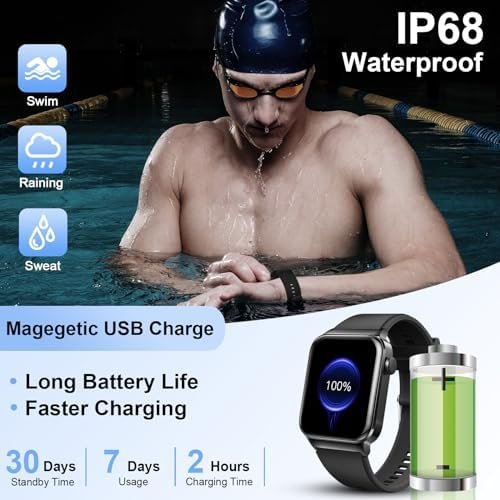 【IP68 Waterproof and 20+ Daily Functions】This mens smart watch is IP68 waterproof and suitable for daily wear. It can withstand sweat, rain and hand washing (not suitable for saunas or hot showers). The android watch has more than 20 built-in functions, including weather, calculator, stopwatch, alarm, sedentary reminder, music control and remote photography, making it your all-in-one life assistant.