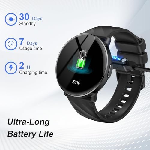 Ultra-long standby: The smart watch has an ultra-long standby function. When various functions and daily message notifications are turned on, the battery life can reach 5-7 days, and it can be extended to 30 days in low power mode. It has a fast charging function and can be fully charged in 1.5 hours, so you don’t have to worry about the battery.