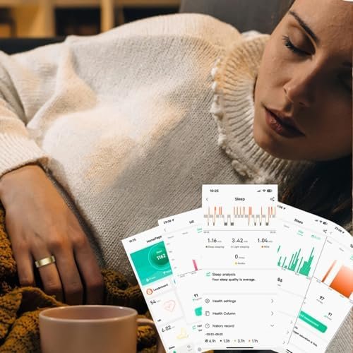 【Intelligent Sleep Tracker】The fitness ring automatically monitors your sleep quality. It can record deep & light sleep duration, eye movement, and wakefulness. You can view various indicators anytime in the app and adjust your lifestyle based on reports
